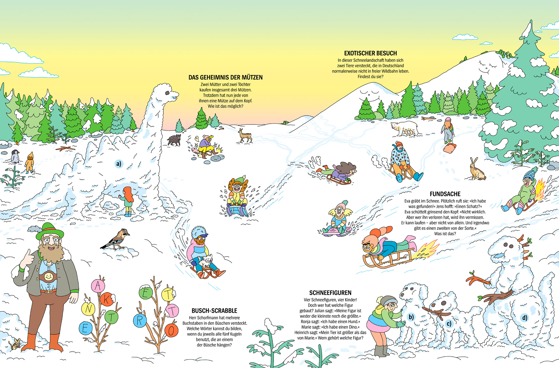 In 2022, I had the honor of illustrating a whole series of children's puzzles for DeinSPIEGEL (german kids magazine). In this monthly series, I was able to try out many different techniques on various topics, which was great fun for me.